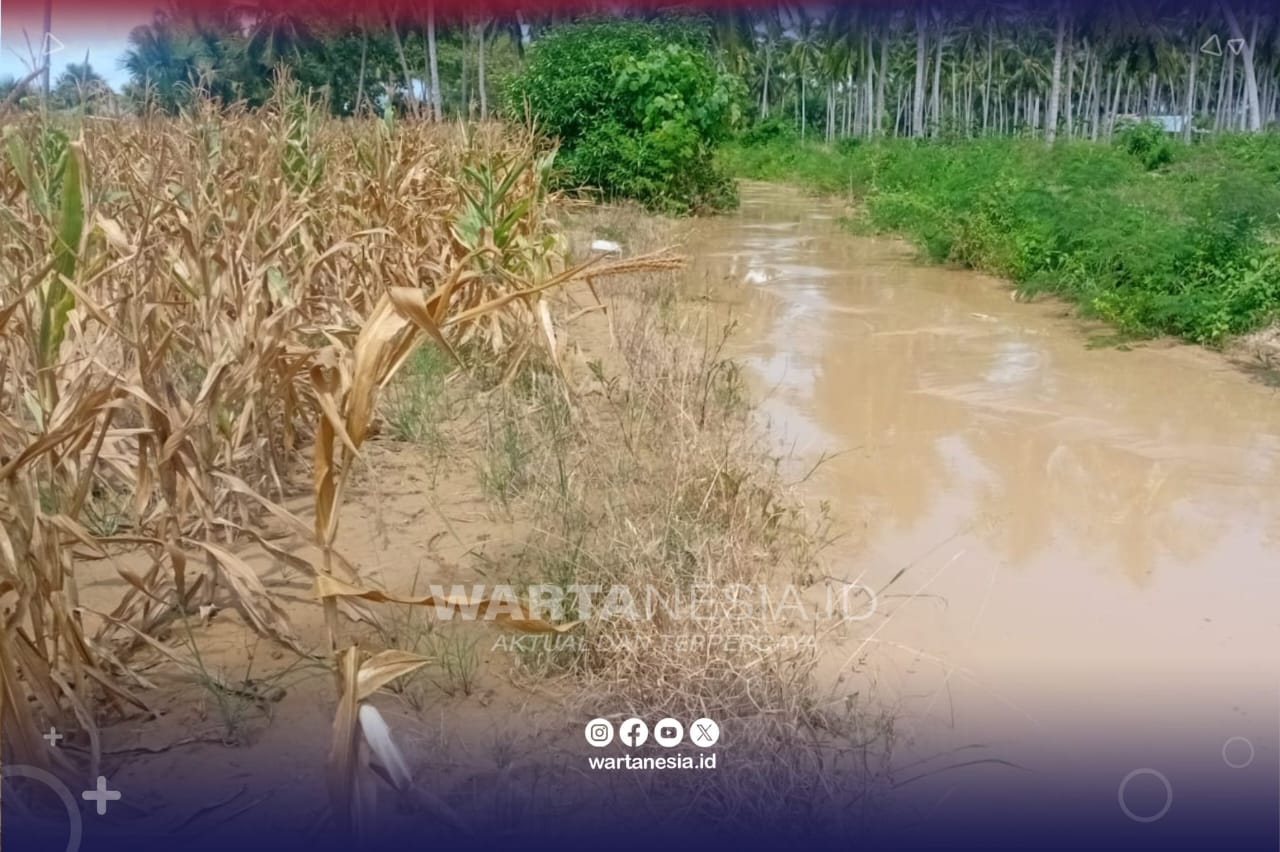“Air sudah naik karena salurannya penuh sedimentasi. Jagung rusak dan tidak bisa dipanen. Ada 1 hektare yang terdampak. Air keruh itu dari PETI Bulangita,” ungkap Kisman, Minggu (16/11/2025).